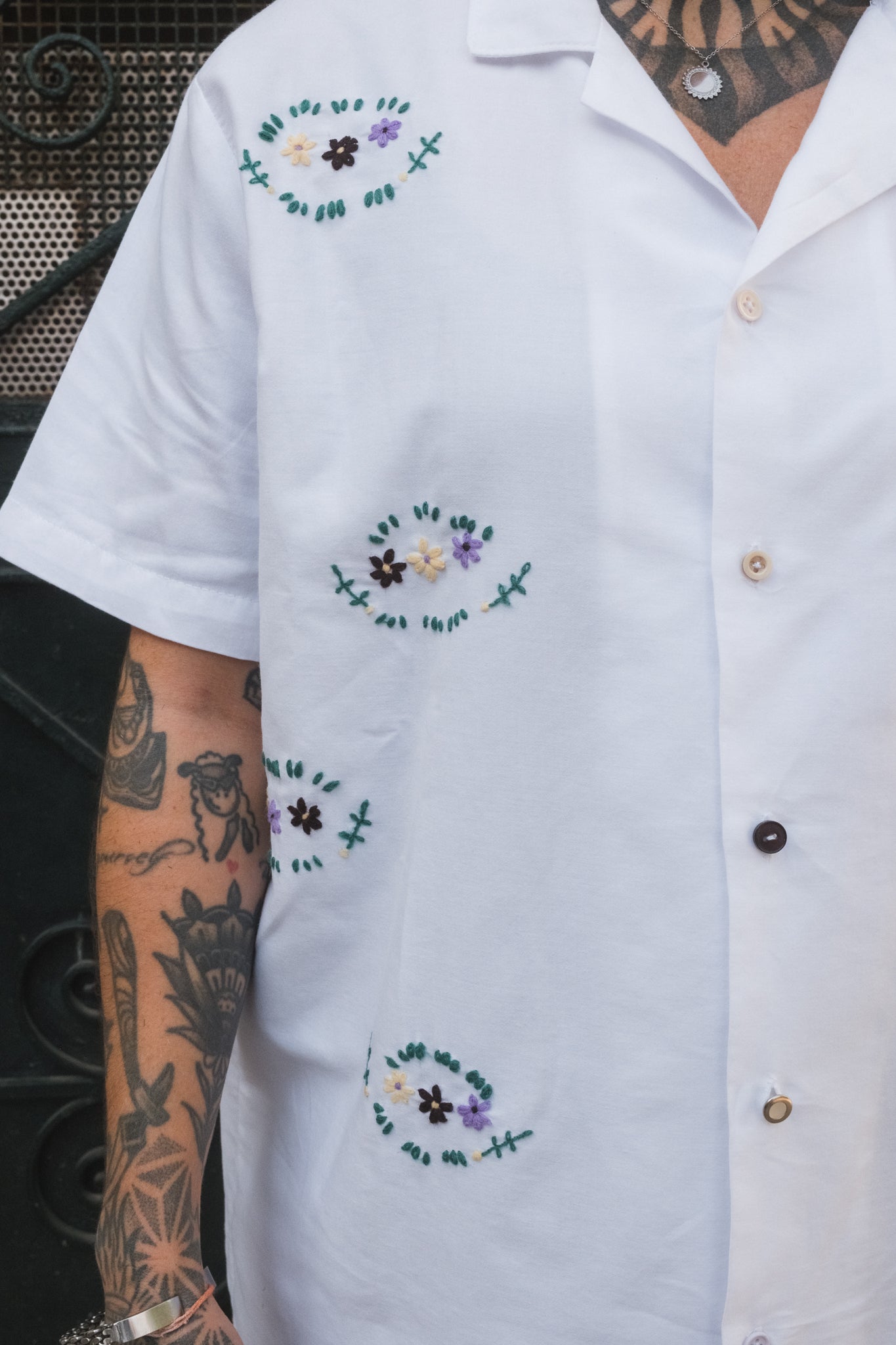 So we decided to change that and give her our small stage. We asked her if she wanted to embroider on our shirts and gladly for us all she accepted. What makes this story even more unique is that Auntie Fernanda embroiders from memory as her eyes have lost some sharpness.